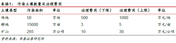 土壤污染具有多样性,修复难度大、成本高。不同的污染土壤往往有着不同的污染源,污染土壤所处的地质形态(如周遭的地表水和地下水分布)也可能对土壤污染情况带来变量。因此,土壤污染行业不存在一招鲜的修复技术,修复企业往往需要根据每一个项目的实际污染情况制定有针对性的修复方案,由此提升了土壤修复的难度。