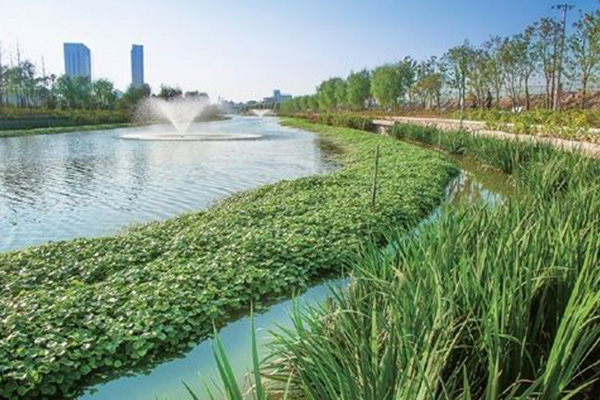 对于湿地的开放保护和污染防治,主要采用水生植物修复进行生态多样性保护,并对水体污染物在一定程度上进行吸收降解,同时投放高效净水微生物,与水生植物协同加强水质改善效果,有效开发和保护人工湿地。